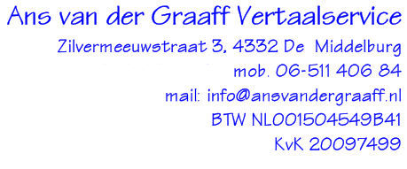 Voor diverse uitgeverijen verzorgt Ans van der Graaff Vertaalservice vanuit Middelburg de vertaling